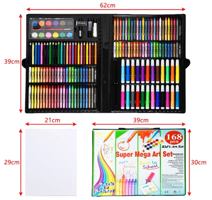 A rajzolás és festés rendkívül kreatív tevékenység, amely fejleszti a képzeletet, de az ötletek megvalósításához és papírra ültetéséhez megfelelő festőeszközökre van szükség. Ez a készlet 168 elemből áll.