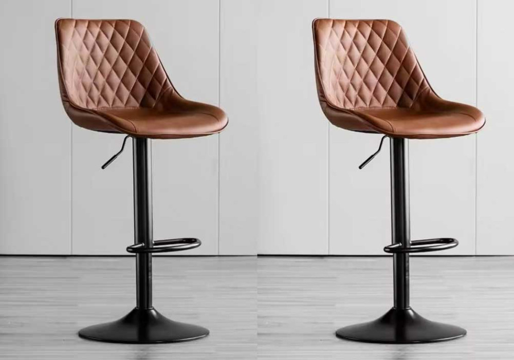 A varrásminta modern és stílusos dizájnt biztosít. Az ülőpárna 360 fokban elforgatható, a magassága fogantyúval állítható. Az üléspárna alatti fogantyú szintén 360 fokkal elforgatható, így a magasságot különböző irányokba állíthatja. A nagy sűrűségű, vastag szivacspárna kényelmes ülést biztosít. A párna felülete PU bőrből készült a könnyű tisztítás érdekében. A lábtartó kialakítás megkönnyíti a lábak elhelyezését, nyugodtan hátra dőlhet és lazíthat. Az alap króm acélból készül, ami tartóssá teszi. A gumigyűrű alja megakadályozza a padló karcolódását.