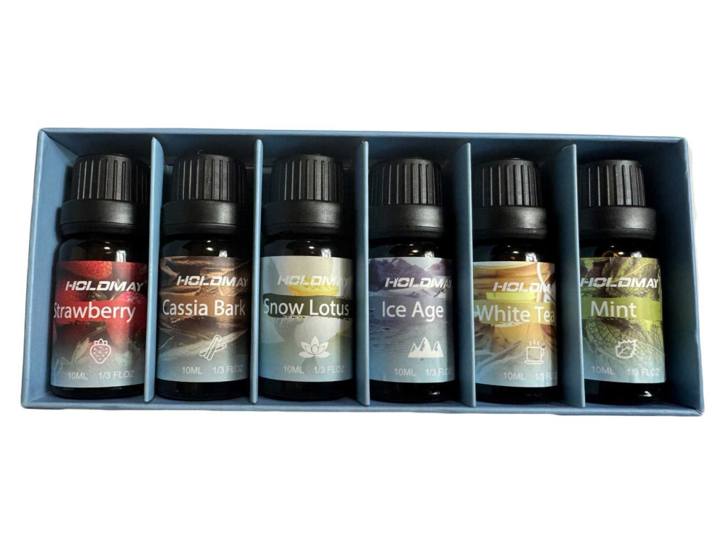 A 6 db-os aromaterápiás illioolaj szett tartalma: