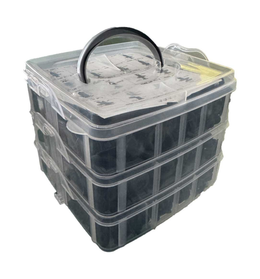Különböző méretek a legtöbb autómárkához. A klipek szét vannak válogatva, az esztétikus rendező pedig egyszerű tárolást és áttekinthetőséget tesz lehetővé.