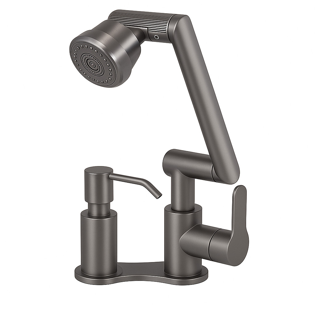 Ez a stílusos, modern konyhai csaptelep és szappanadagoló páros tökéletes választás azok számára, akik egyszerre keresnek praktikus és esztétikus megoldást. A csap prémium, matt fém kivitelben készült, amely nemcsak elegáns megjelenést biztosít, de rendkívüli tartósságot is. A felső részben elhelyezett, többfunkciós zuhanyfej könnyed irányíthatóságot és hatékony vízáramlást kínál, megkönnyítve a mindennapi mosogatást és tisztítást.