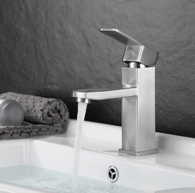 Egykaros ezüst színű mosdócsaptelep, mely rendkívül könnyen használható.