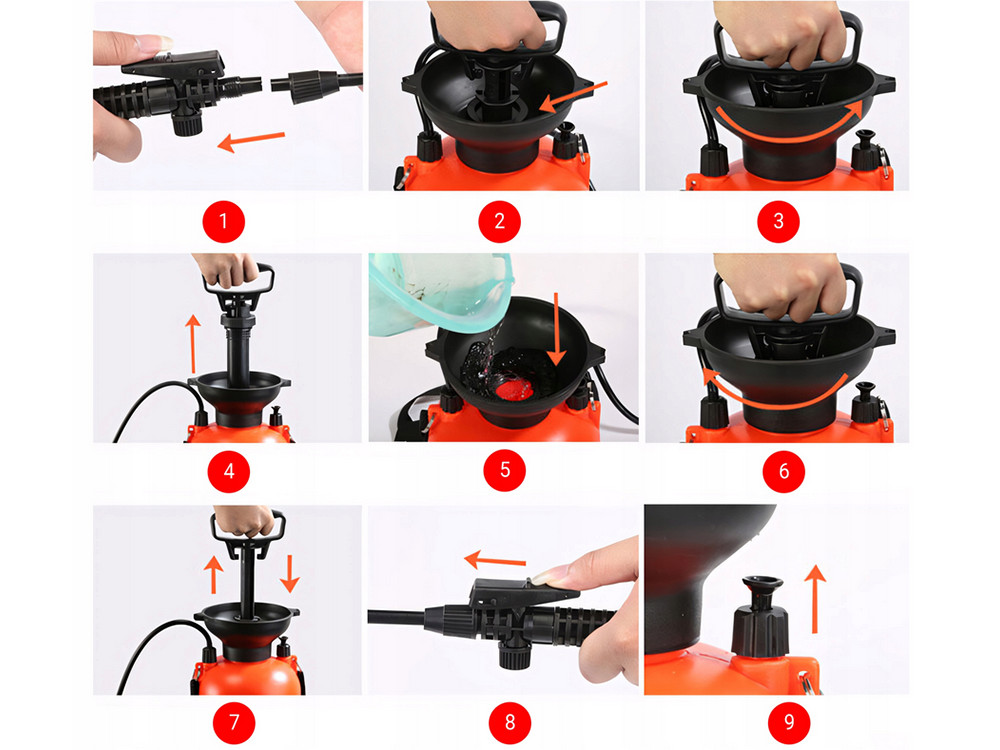 A szerszám könnyű és robusztus. Csak néhányszor kell mozgatnia a dugattyút, hogy megfelelő nyomást hozzon létre a permetezéshez.
