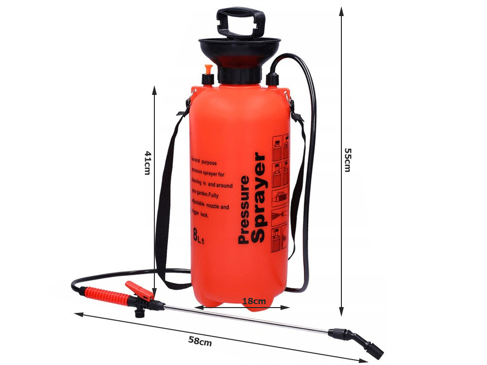 A nagy, 8 literes tartály hatékony munkavégzést tesz lehetővé anélkül, hogy a permetezőt gyakran fel kellene tölteni.
