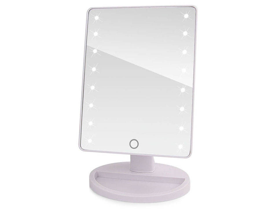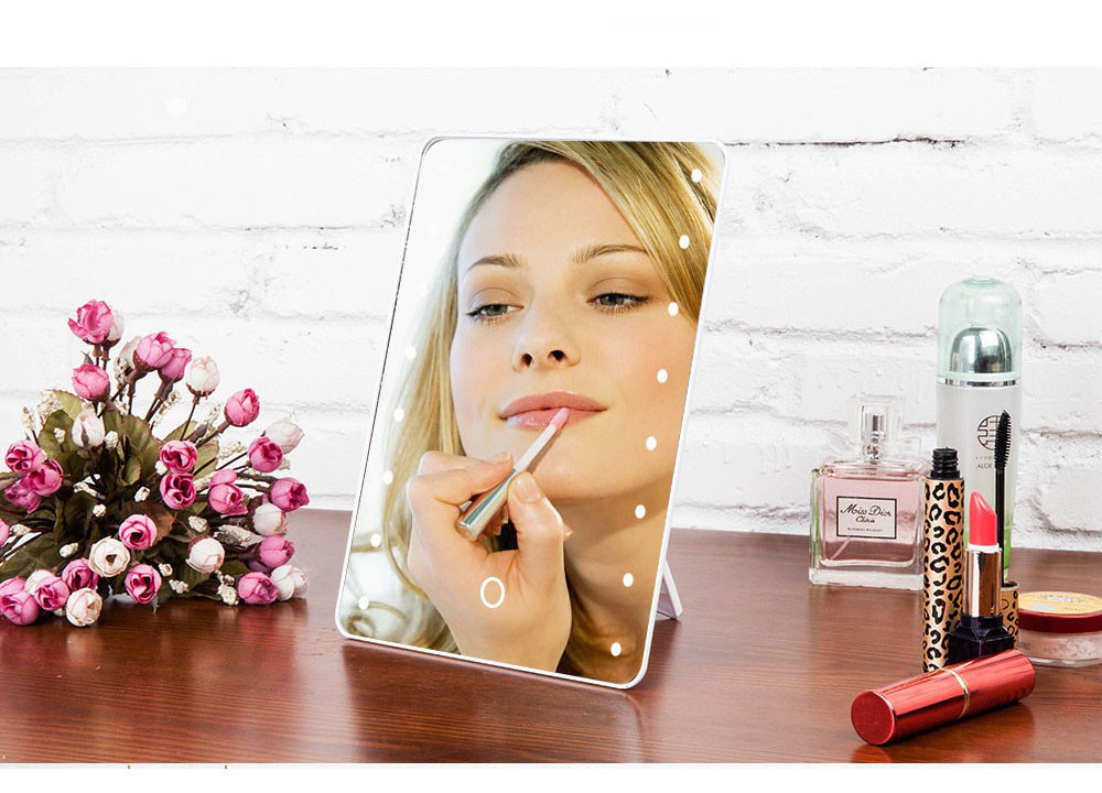 Beépített 16 LED-es háttérvilágítással rendelkező kozmetikai tükör.