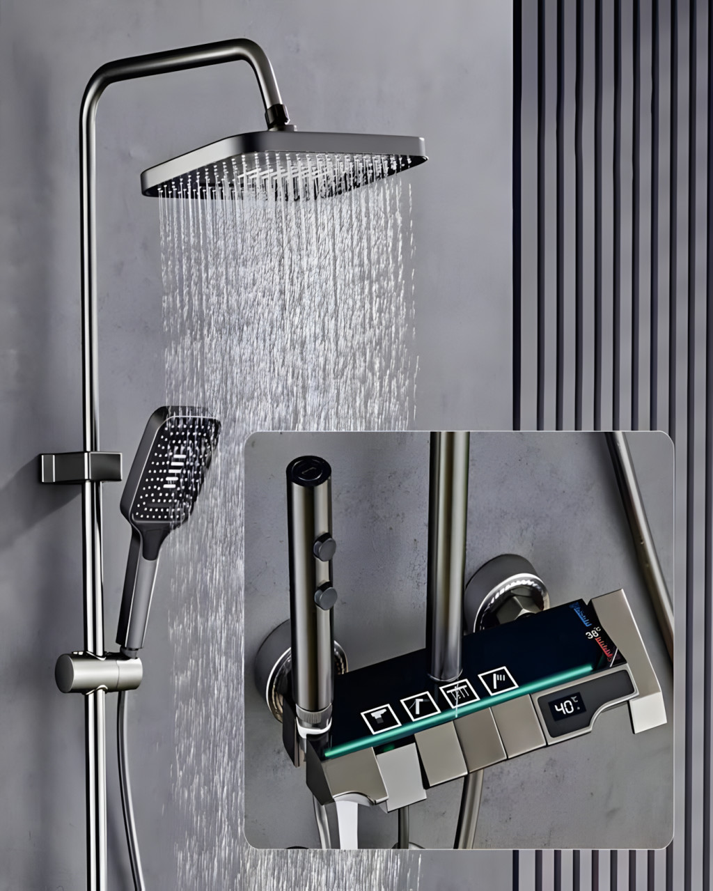 Négyzet alakú elegáns termosztatikus zuhanyszett hőmérséklet kijelzővel - prémium edition