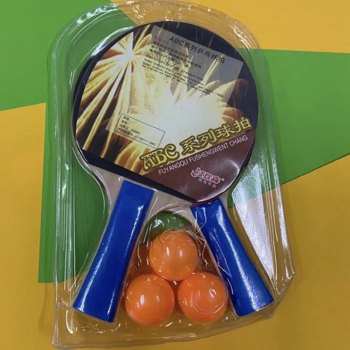 Ping-pong készlet három darab labdával és két darab ping-pong ütővel.