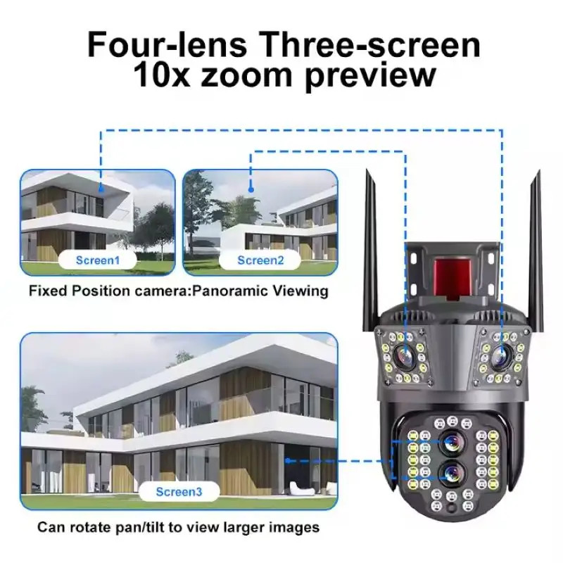 Professzionális biztonsági kamera (Wi-Fi), három lencsével, éjjellátó funkcióval, 10x zoom, mozgásérzékelés, ingyenes alkalmazás