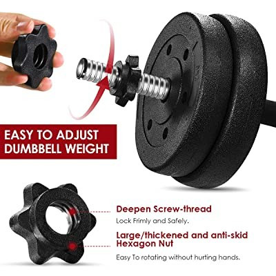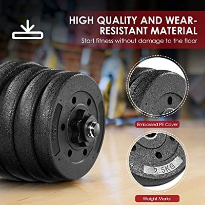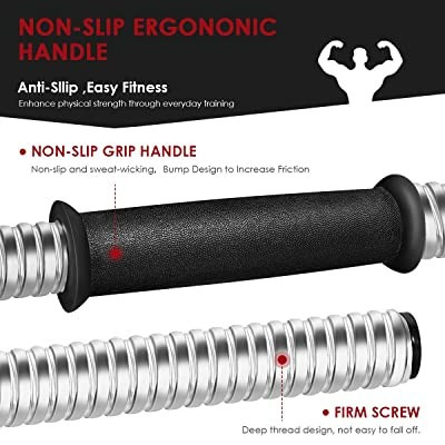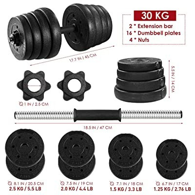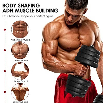 Ez a súlyzókészlet egyaránt alkalmas a tricepsz, bicepsz illetve a hát és hasizom erősítésére is.  A szetthez 16 db levehető korong tartozik, így igyény szerint alakíthatod edzéstervedet, váltogatva a súlyok nehézségét. A korongok és maga a rozsdamentes rúd (2db a csomagban) is hőálló, kiváló minőségű.