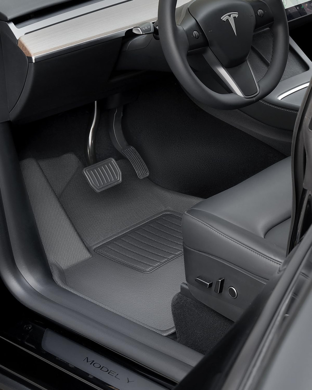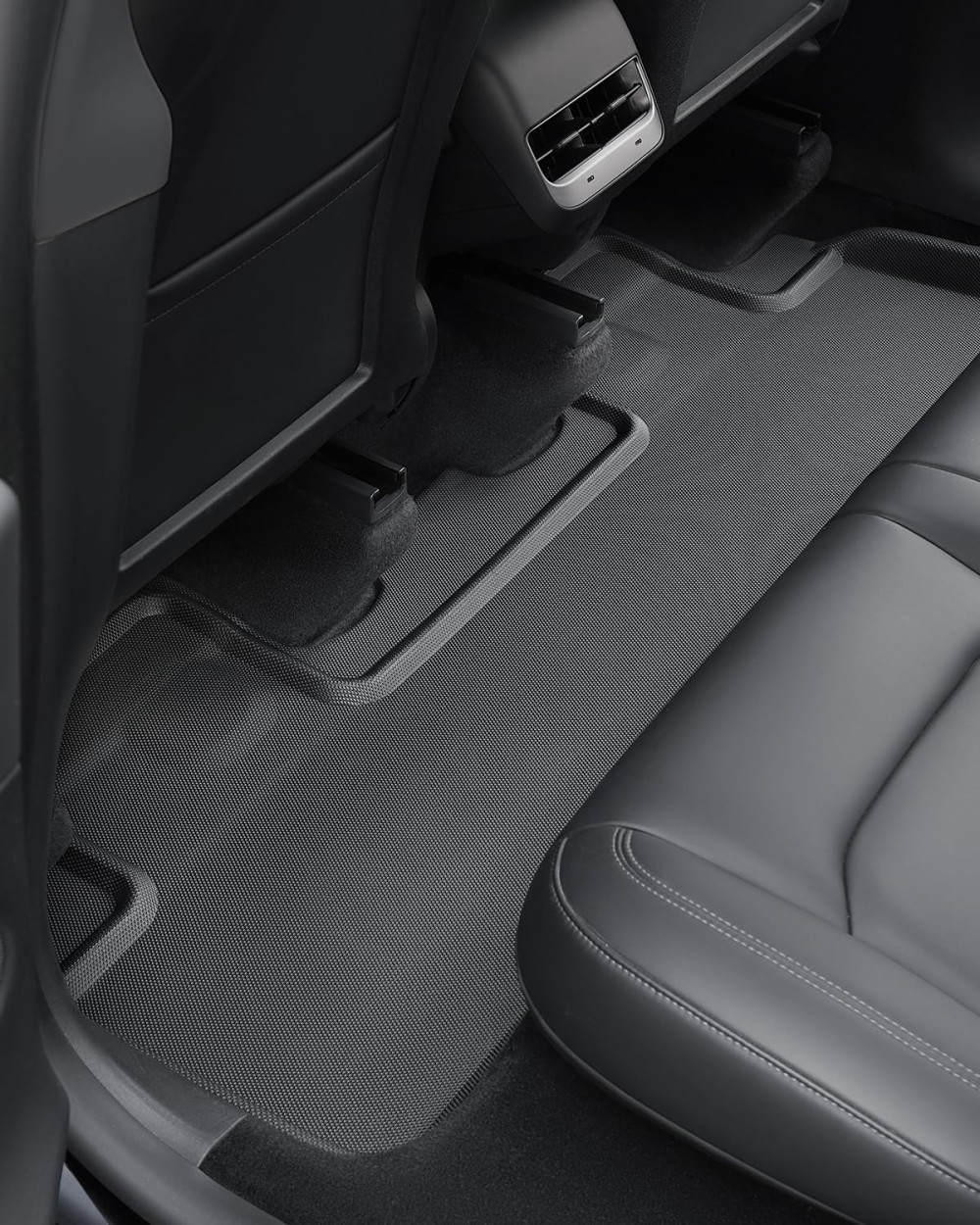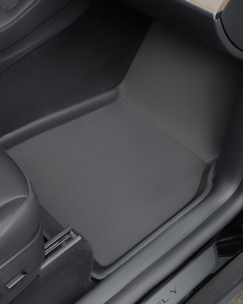 Tesla Model Y gumiszőnyeg (poliészter szövetbevonattal és merevítéssel)A magas oldalperem és a merevítés megakadályozza a szőnyegek elcsúszását.
