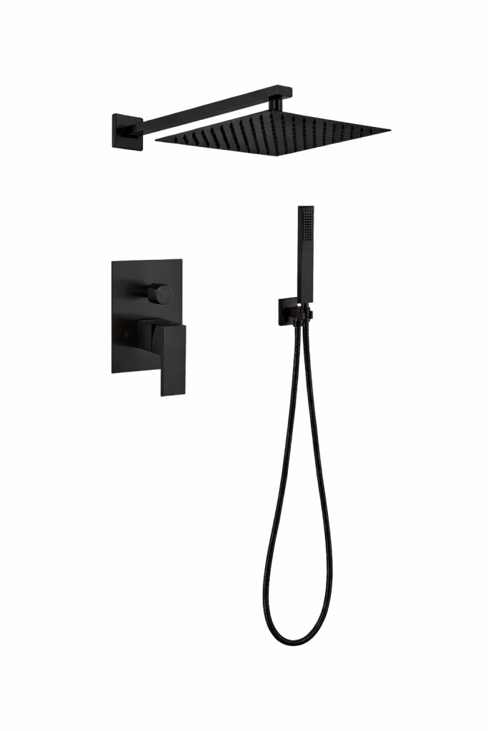 Négyzet alakú elegáns három részes beépíthető zuhanyszett - fekete színben - prémium edition